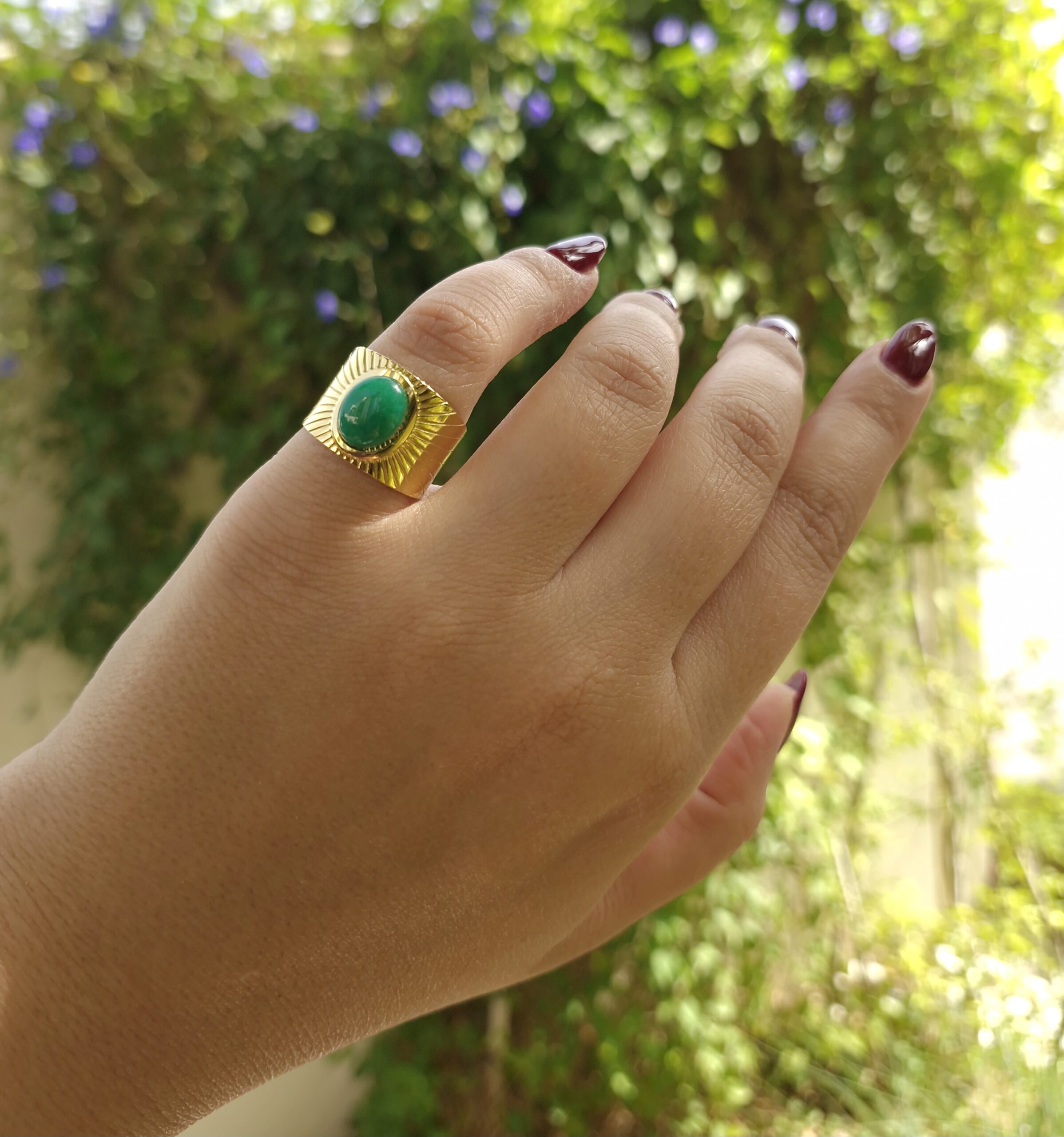 Adjustable green stone ring/Gold plated /Non tarnish/ Water resistant/ Size: Adjustable.