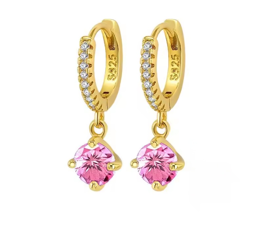 Pink earrings/ 925 sterling silver / 18k gold plated/ hypoallergenic/ Non tarnish/ Waterproof.