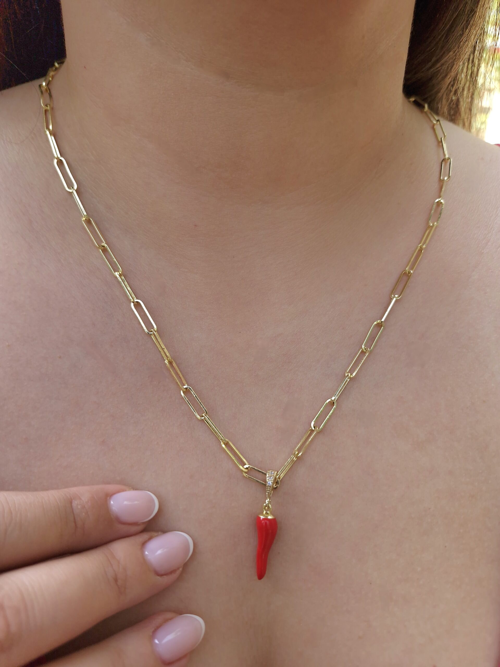 Chilli pepper necklace/ Color: red/ Length : 45cm/ Stainless steel/ 18K Gold plated.