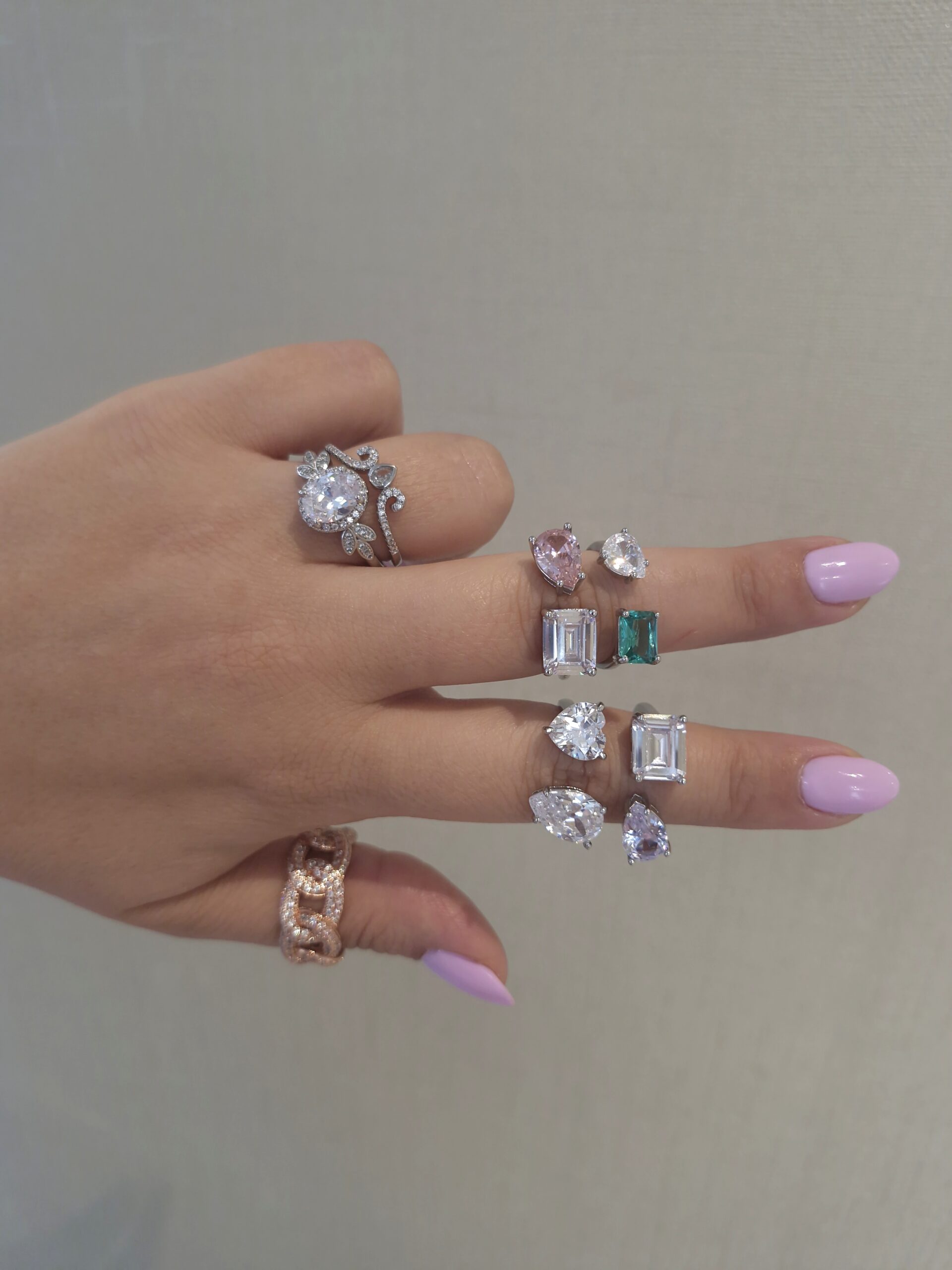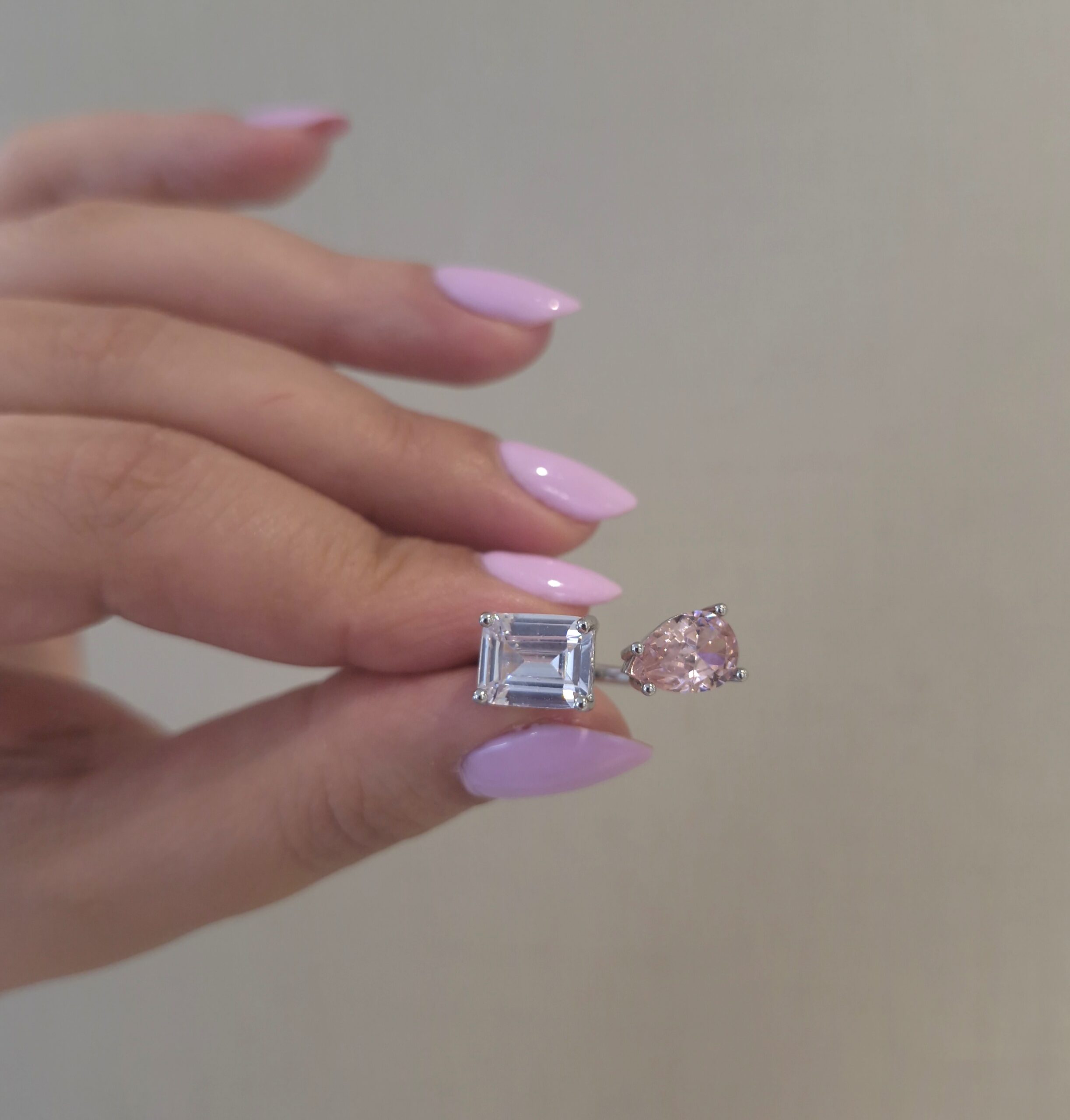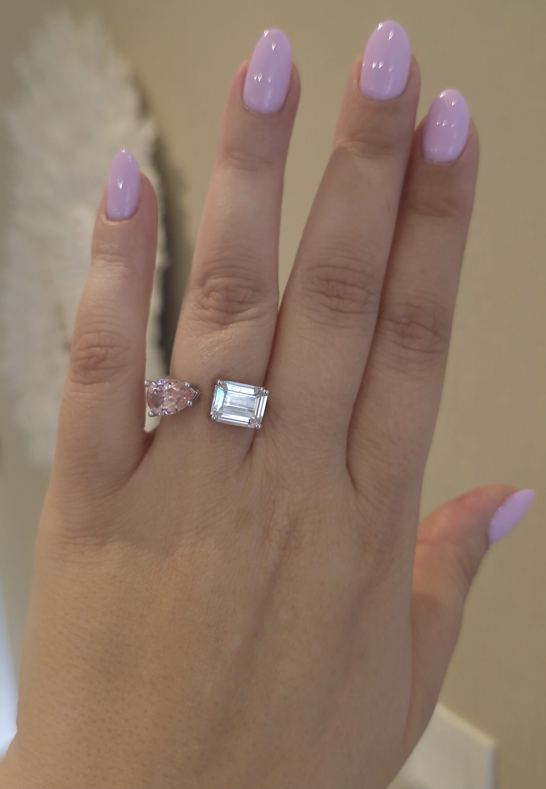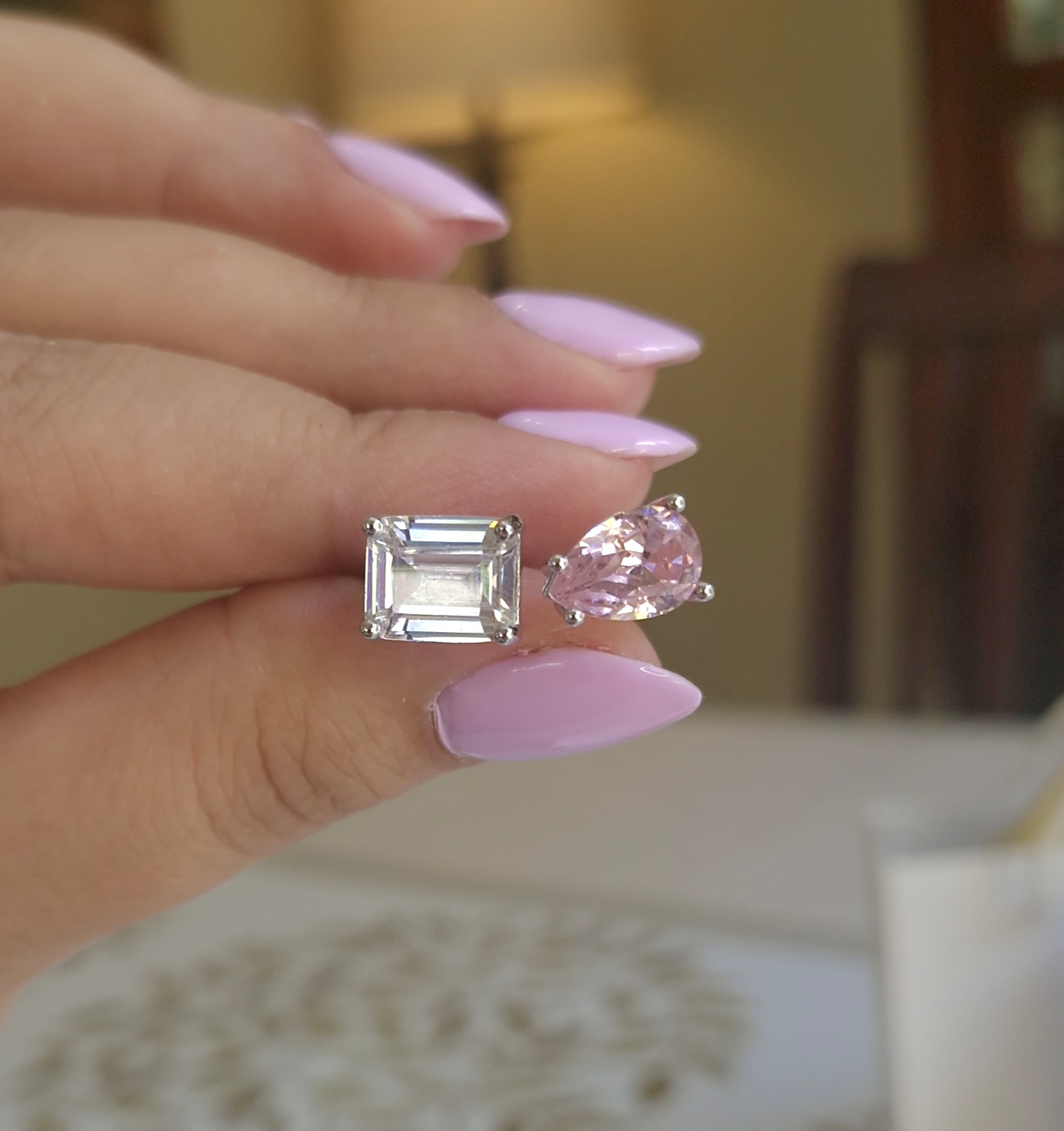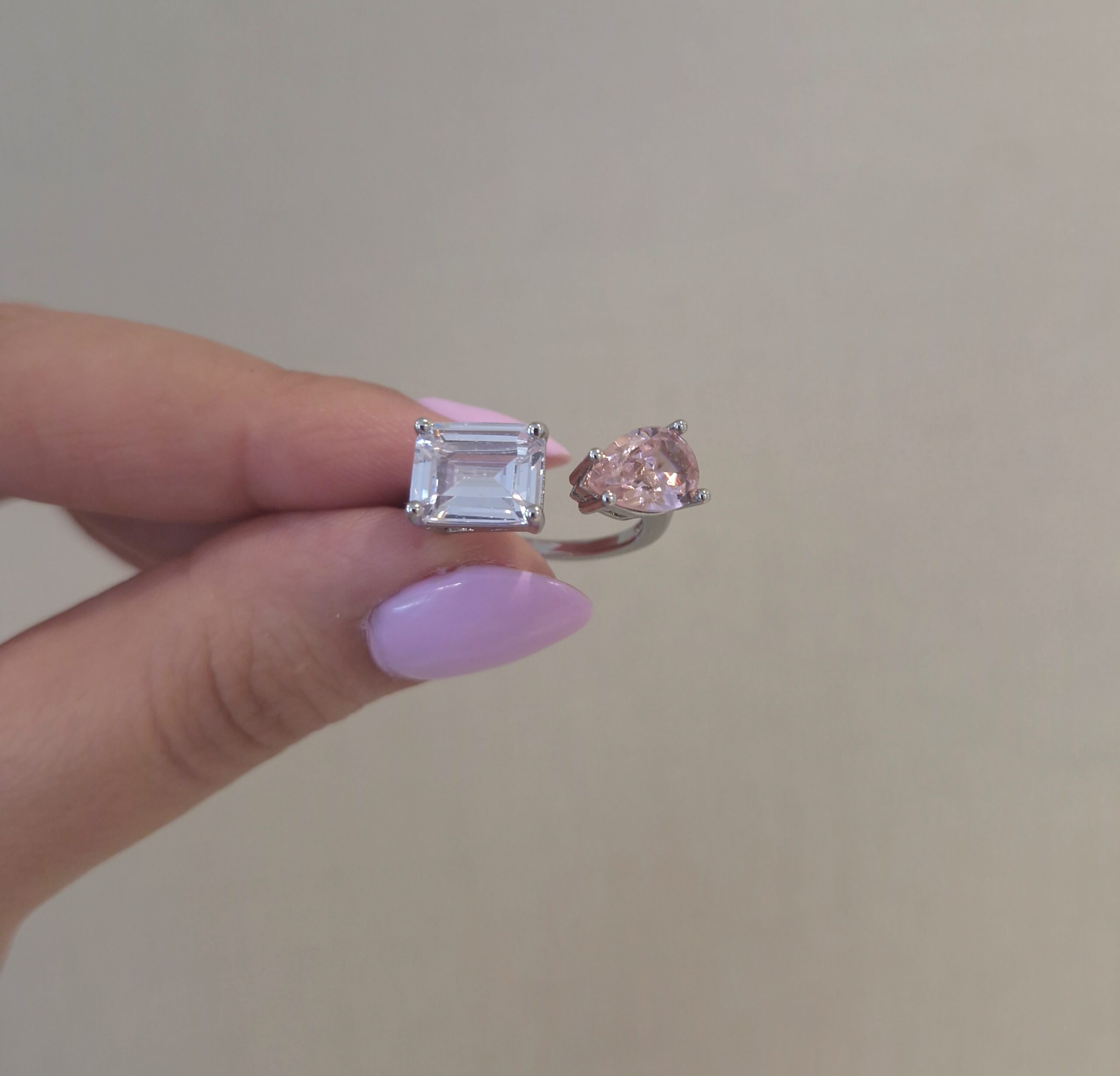 Feminine ring/ Size: Adjustable/ Color: White and pink crystals