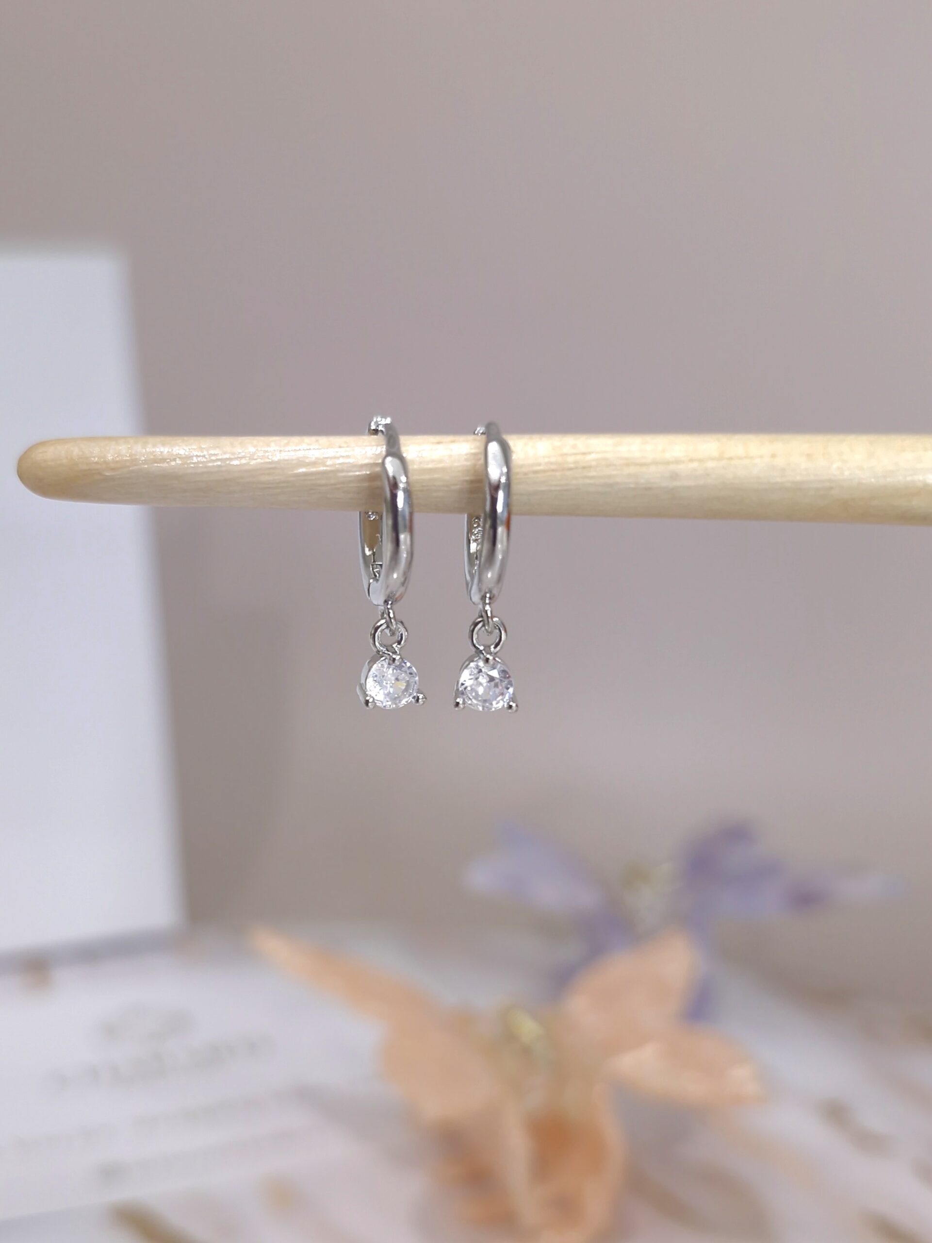 Single diamond earrings/ 925 sterling silver / hypoallergenic/ Non tarnish/ Waterproof.