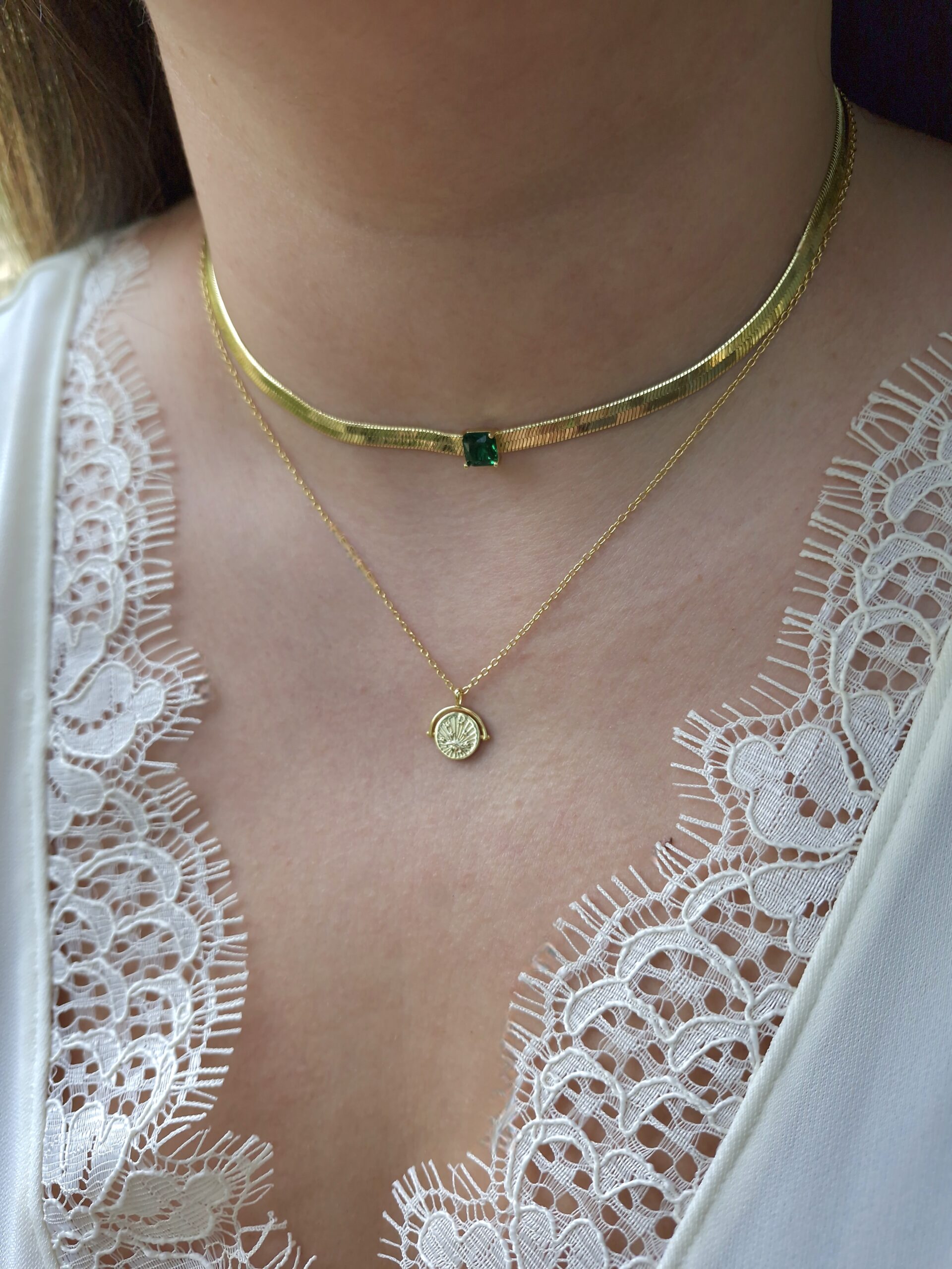 | Choose Necklace | Necklace 1 (Green stone), Necklace 2 (White stone) |