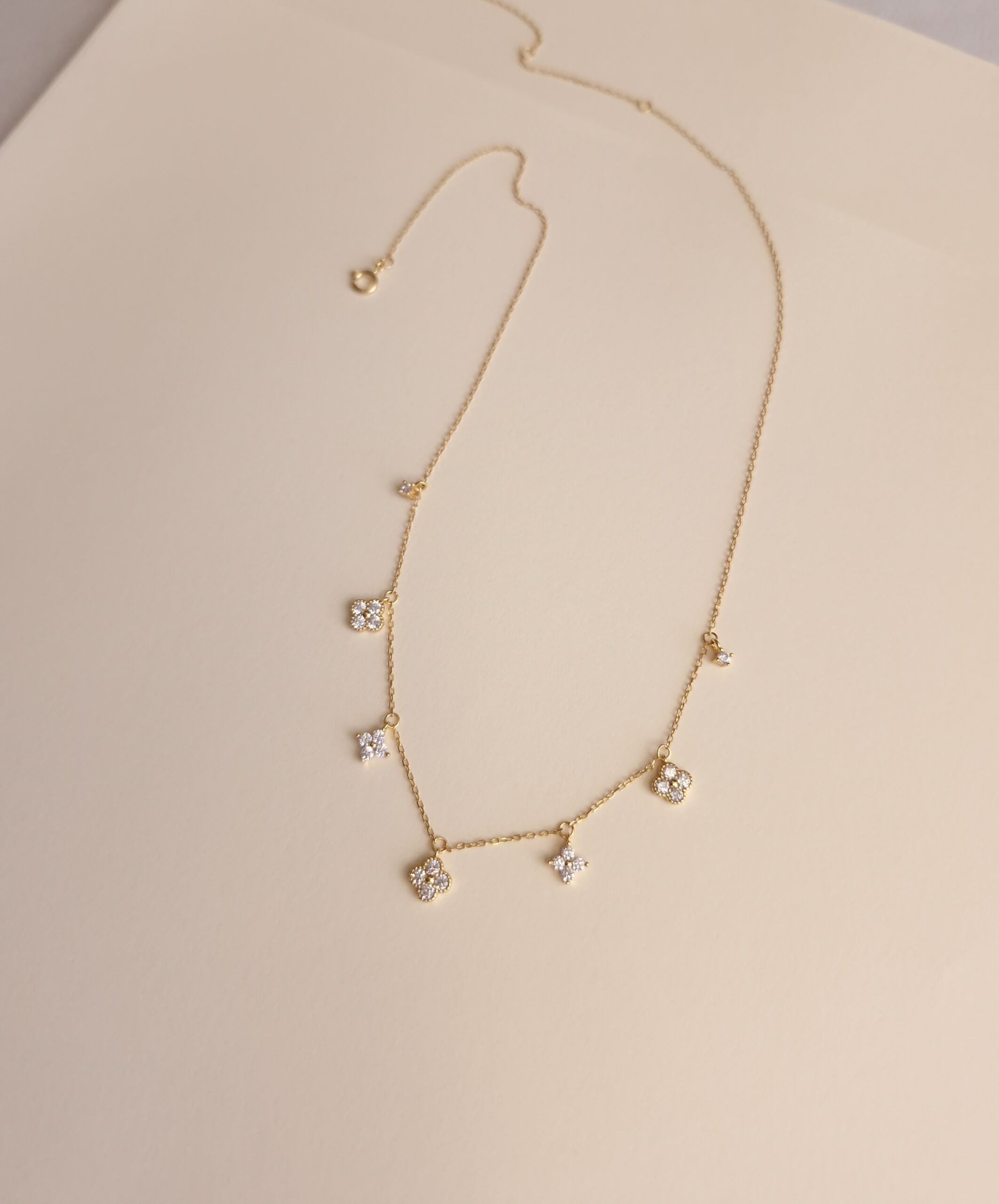 Dandling stars and flowers necklace /925 sterling silver 18k gold plated/ length: 40-45cm