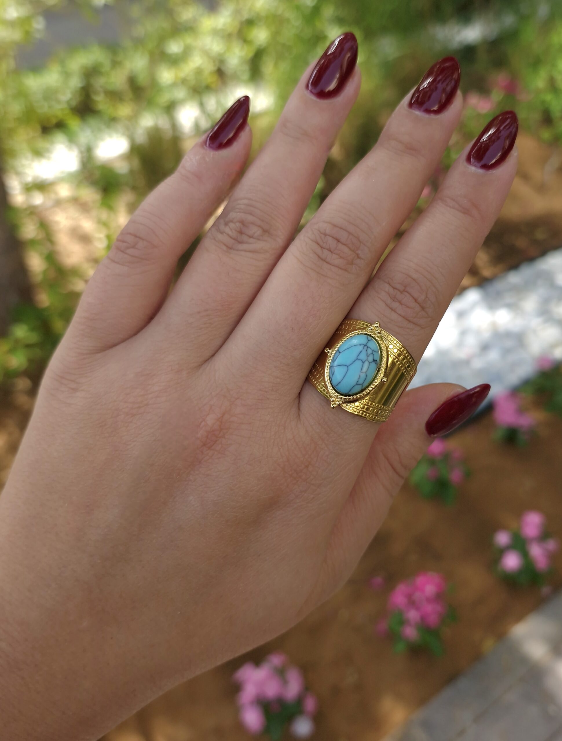 Adjustable turquoise ring/ stainless steel/ 18K gold plated.