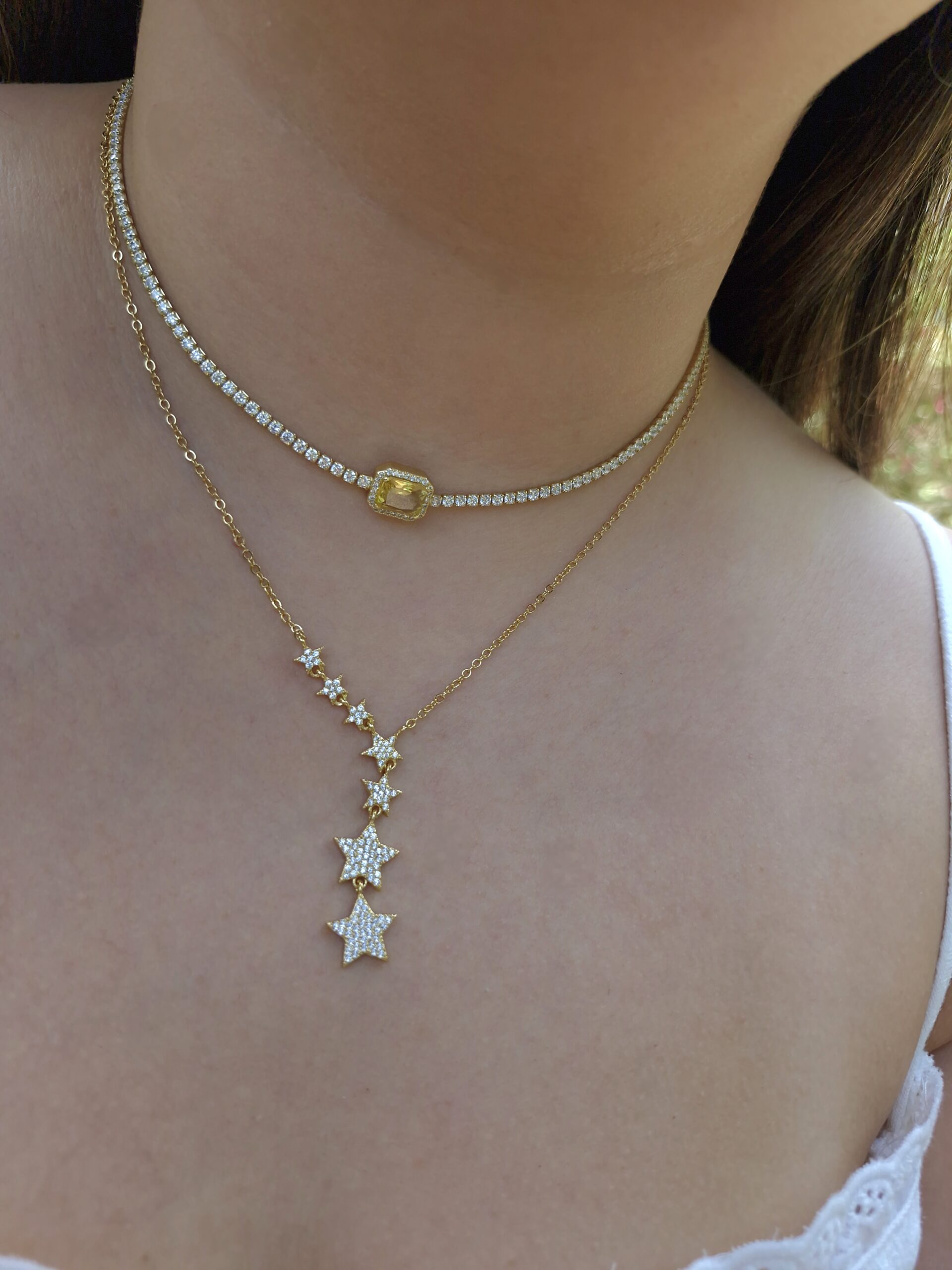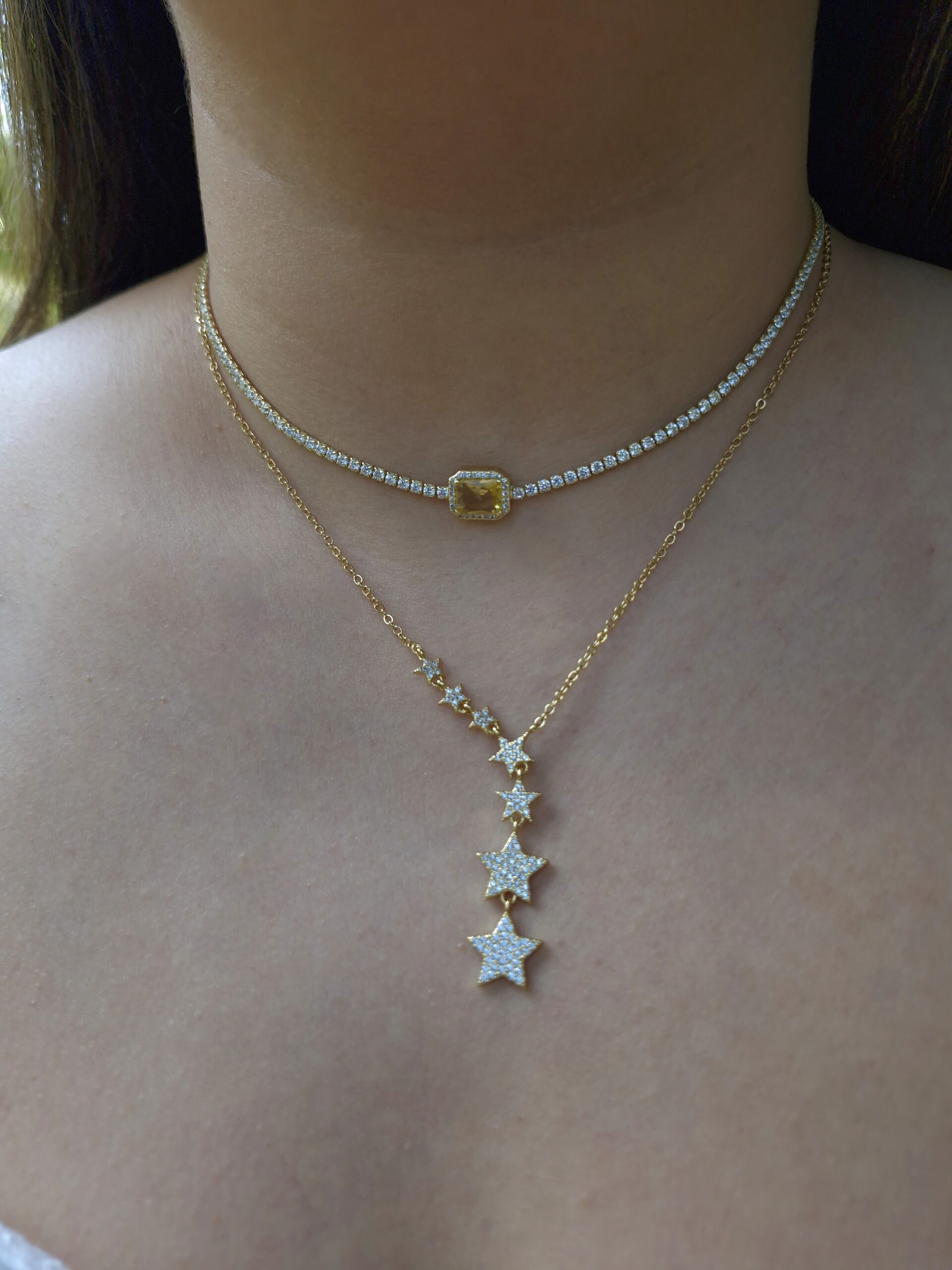 Topaz necklace in yellow stone color/ Gold plated/ 30-45cm/Cubic zirconia stones/Hypoallergenic