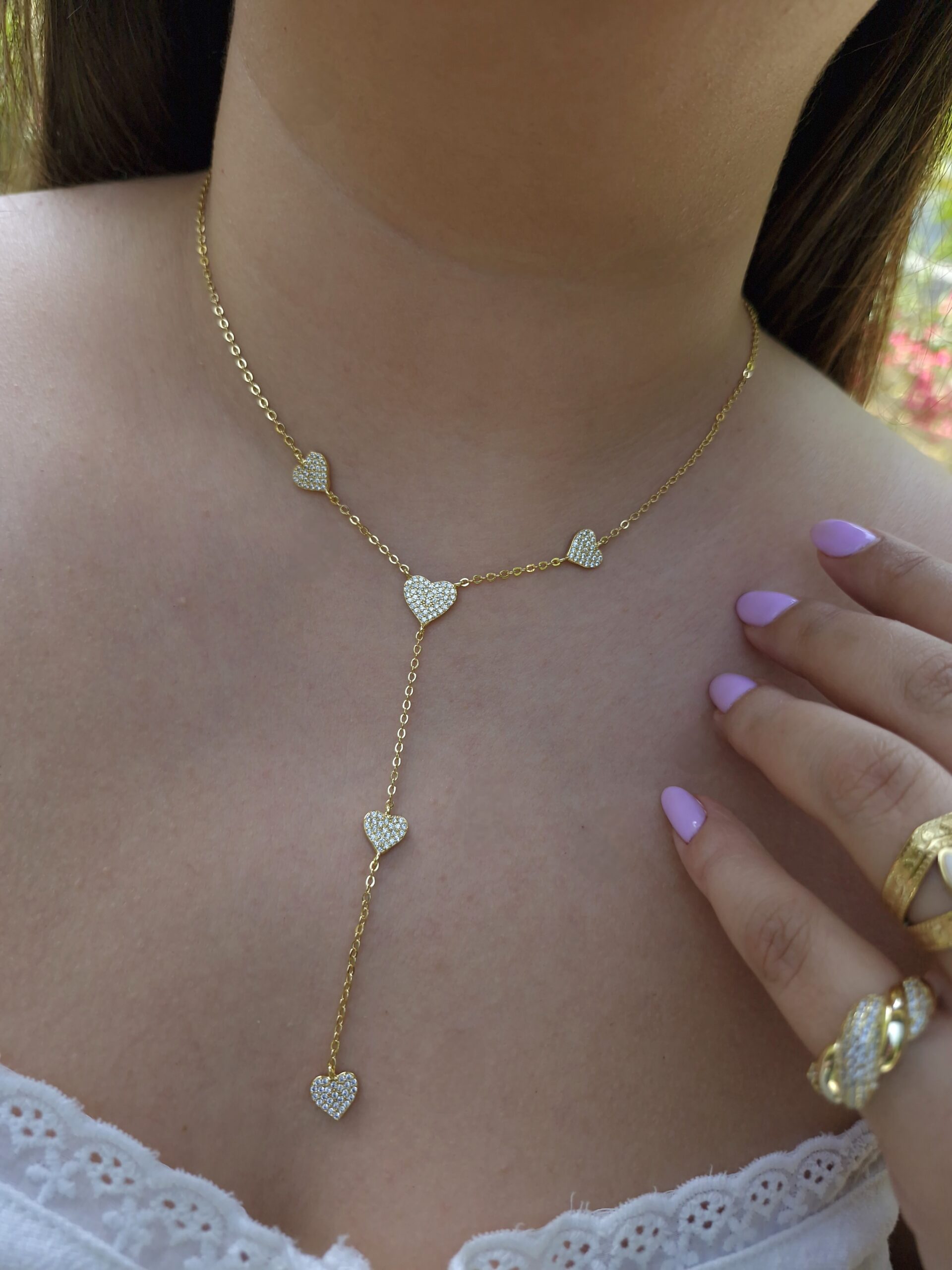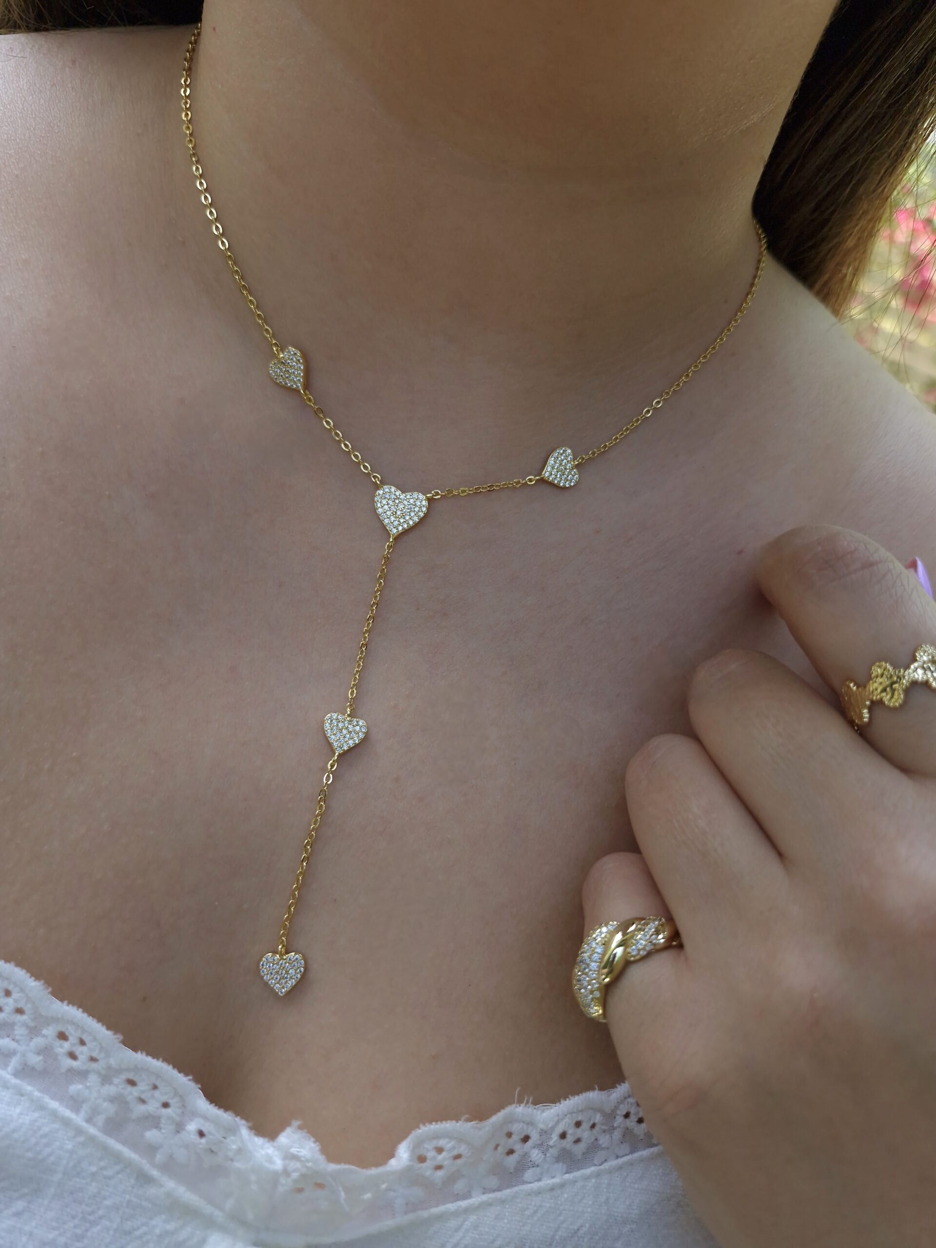 Multi zirconia hearts necklace / Size: up to 60cm/ 18K gold plated/ Non tarnish/ Hypoallergenic.
